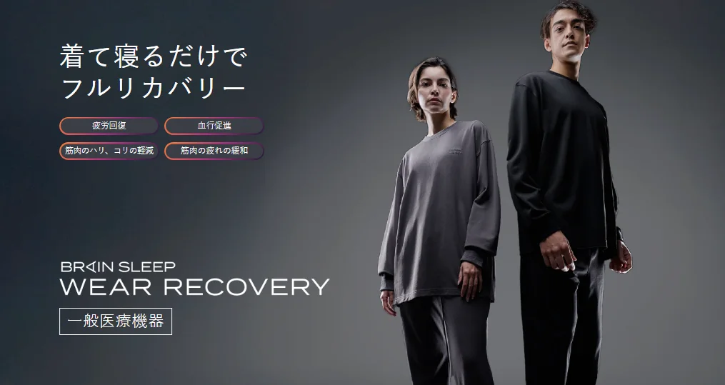 ブレインスリープの「ウェア リカバリー」は、着用するだけで疲労回復、血行促進、筋肉のハリやコリの軽減、筋肉の疲れ緩和といった効果を発揮する一般医療機器です。