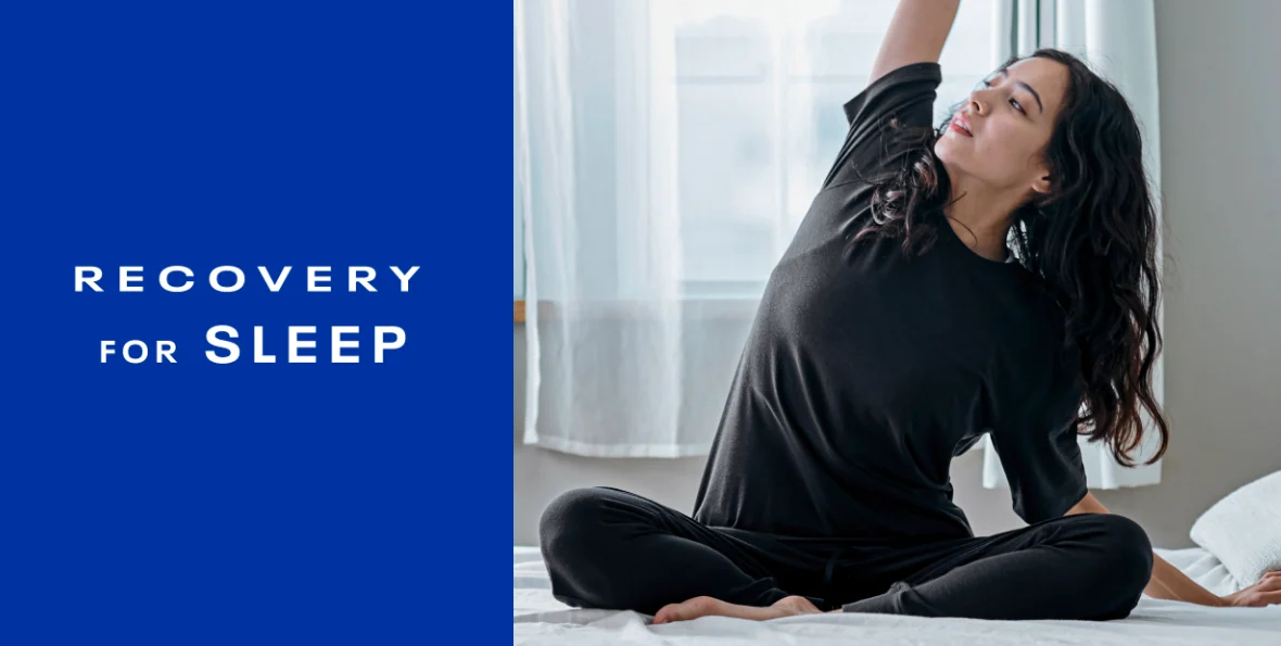 一般に、お風呂で温まった後に体の熱が放出されると、深部体温が下がりやすくなると言われています。通気性に優れたリカバリーウェアを着用することで、こうした自然なクールダウンを妨げにくく、快適なおやすみ時間をサポートします。